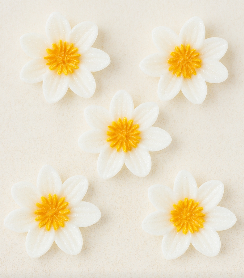 Supersøte kjøleskapsmagneter med blomstermotiv. Miks av forskjellige farger.